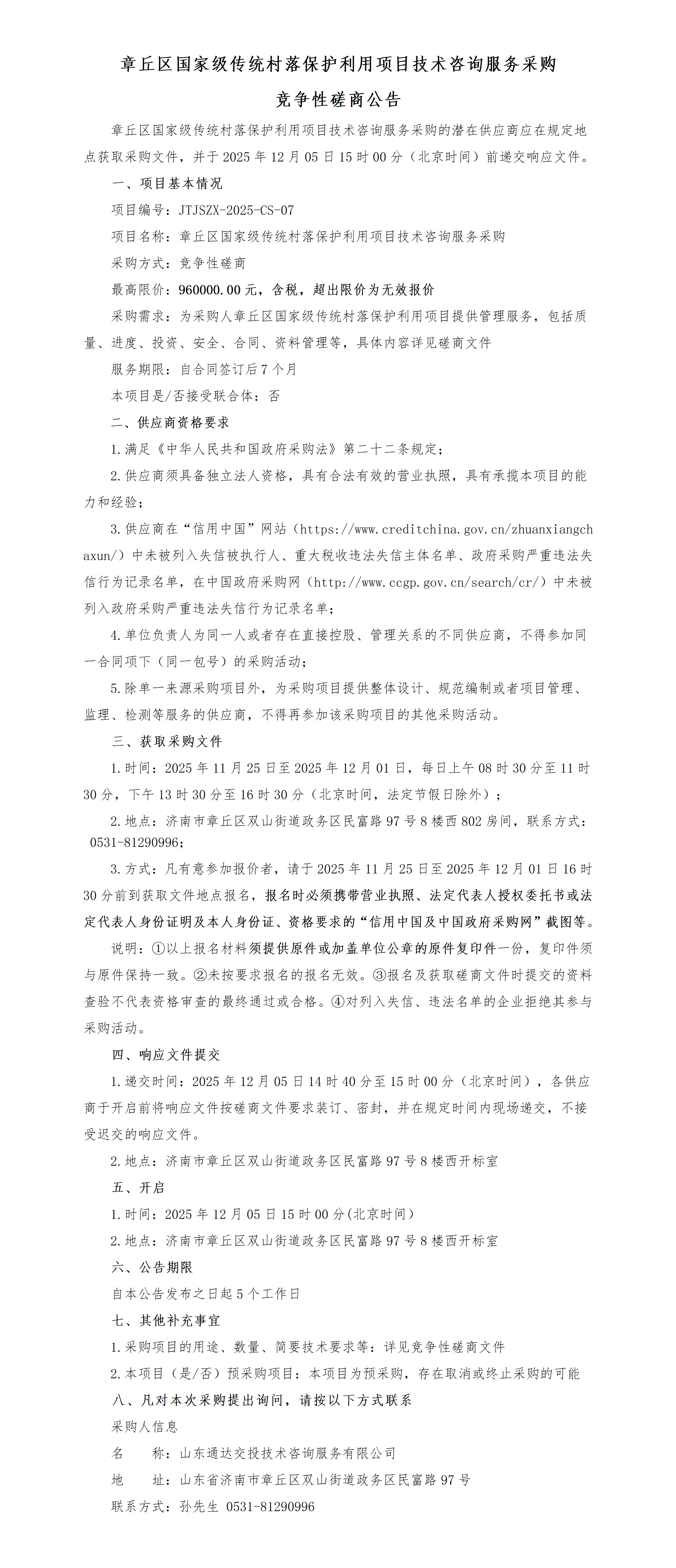 章丘区国家级传统村落保护利用项目技术咨询服务采购竞争性磋商公告