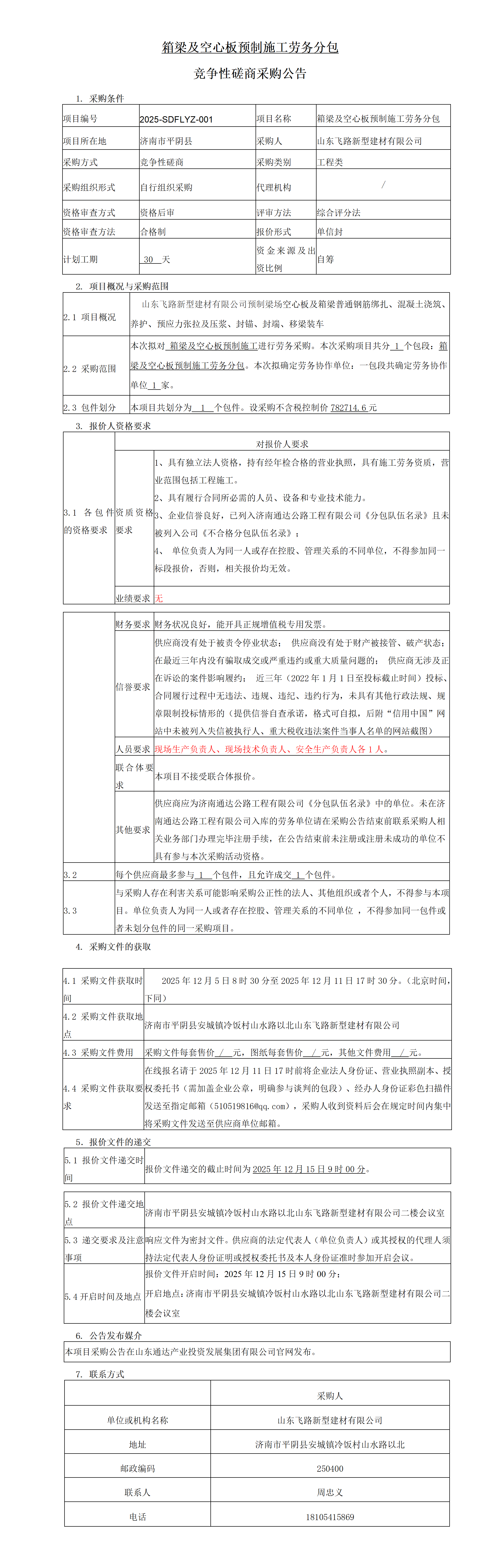 箱梁及空心板预制施工劳务分包竞争性磋商采购公告