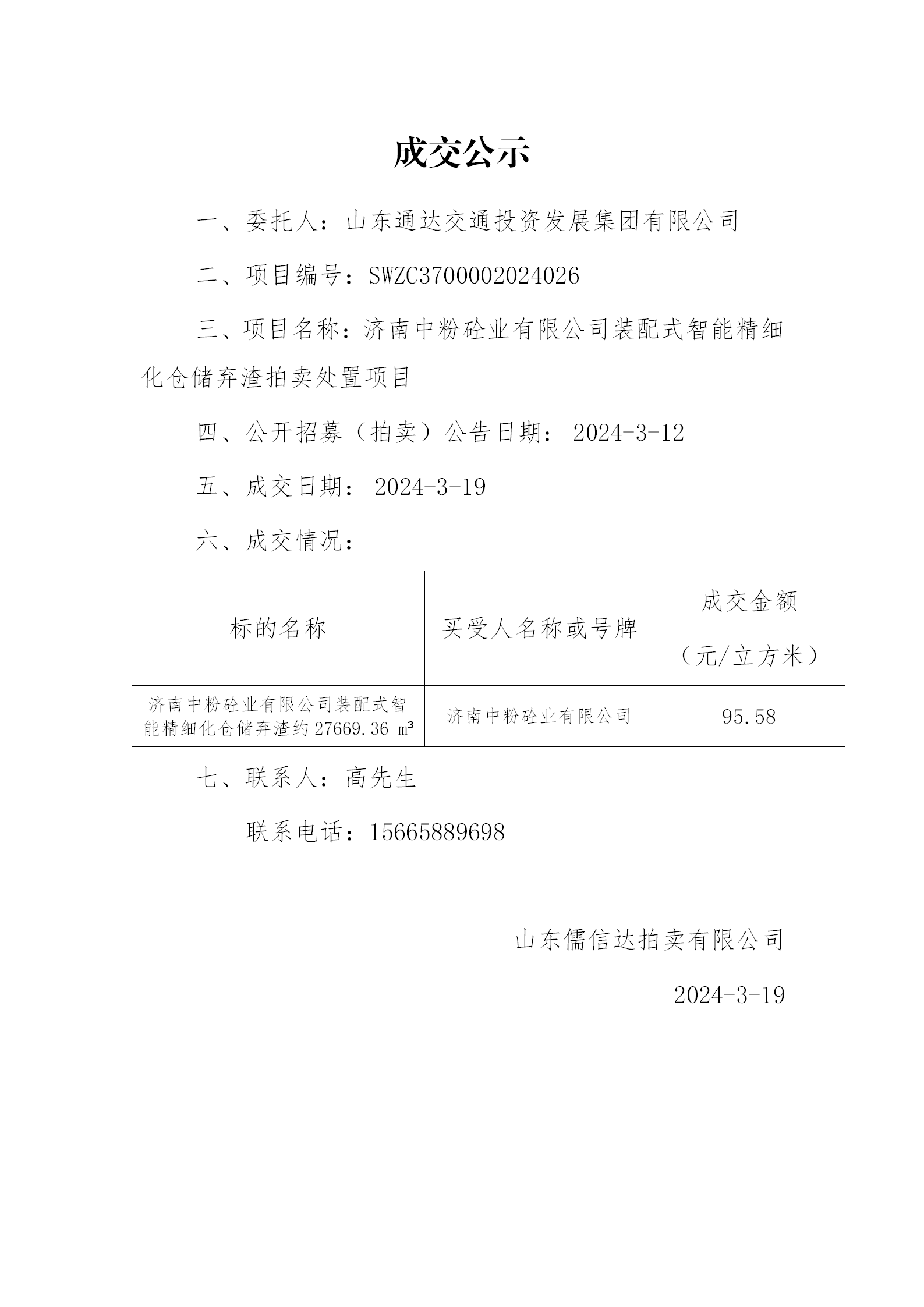 济南中粉砼业有限公司装配式智能精细化仓储弃渣拍卖处置项目