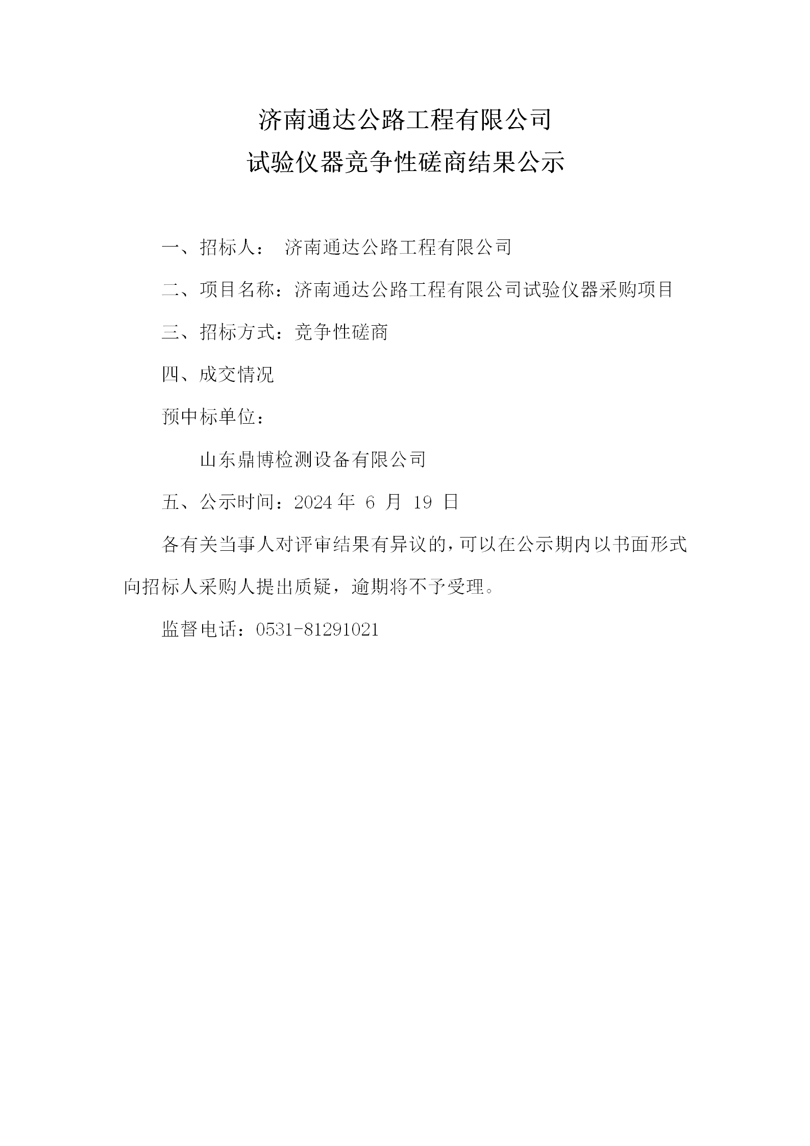 济南通达公路工程有限公司 试验仪器竞争性磋商结果公示