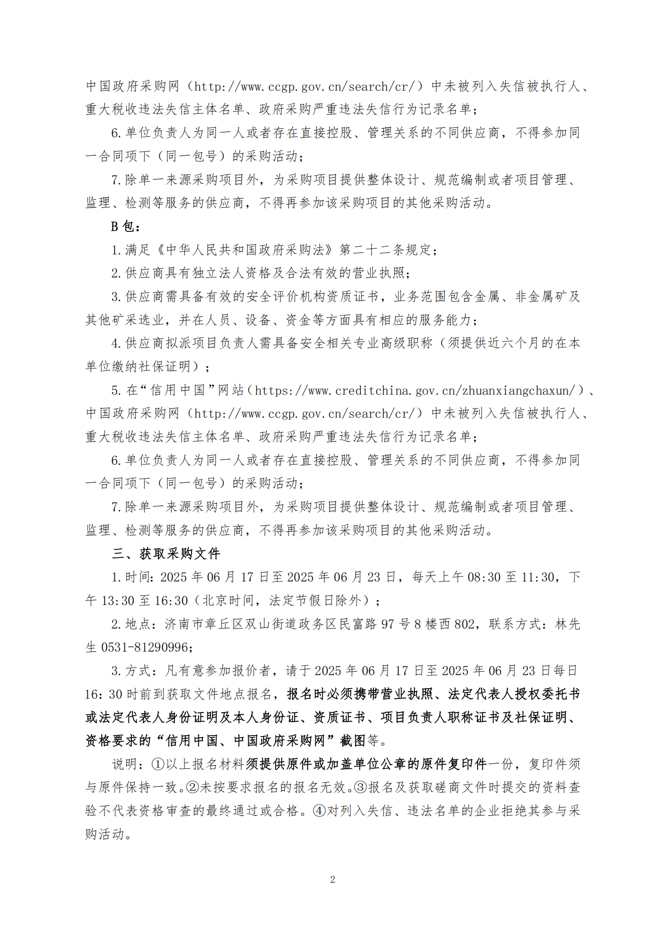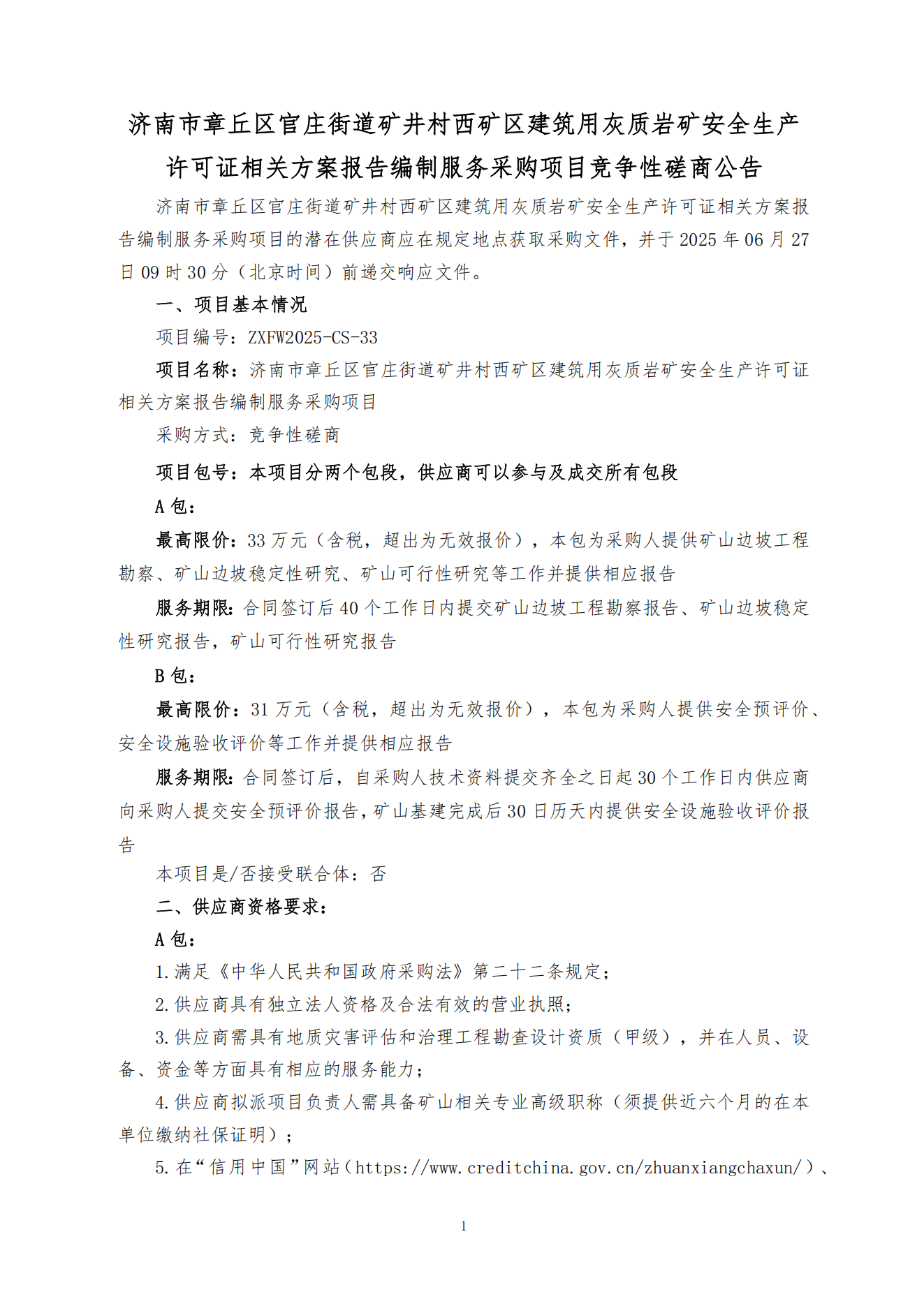济南市章丘区官庄街道矿井村西矿区建筑用灰质岩矿安全生产许可证相关方案报告编制服务采购项目竞争性磋商公告